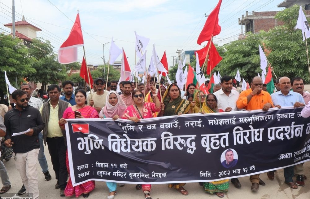 जसपाले विधेयक सुरुदेखि नै विरोध गर्दै आएको छ। पार्टीको दाबी अनुसार, यो कानुनले अवैध जंगल कटानीलाई प्रोत्साहन गर्ने, भूमि व्यापारलाई वैधता दिने र तराई–मधेश क्षेत्रमा मरुभूमिकरणको खतरा बढाउनेछ।