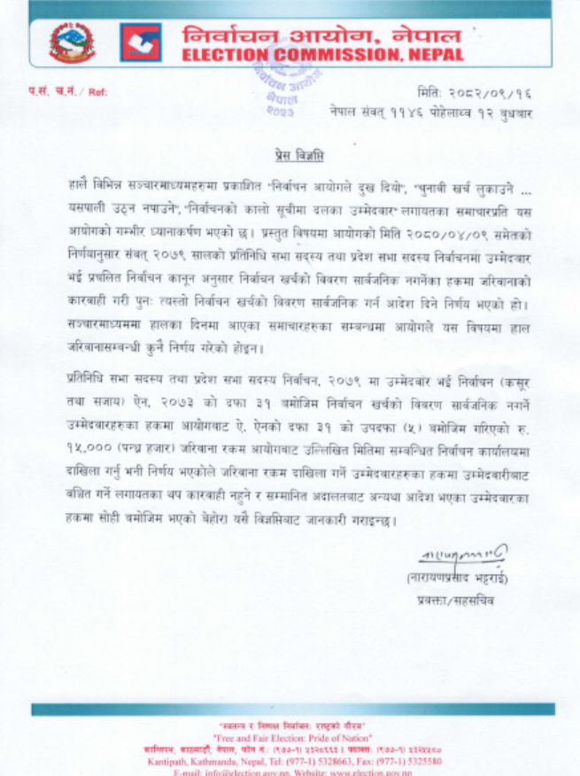 काठमाडौँ। जेनजी आन्दोलनका क्रममा भदौ २३ र २४ गते भएका दमन र विध्वंशका घटनाबारे छानबिन गर्न गठित उच्चस्तरीय जाँचबुझ आयोगले आगामी साता तत्कालीन गृहसचिव गोकर्णमणि दुवाडी, गृहमन्त्री रमेश लेखक र प्रधानमन्त्री केपी शर्मा ओलीसँग बयान लिने तयारी गरिरहेको छ। आयोगले यसअघि सुरक्षा निकायका उच्च अधिकारीहरूबाट बयान लिइसकेको छ। तीन महिनाको म्यादसहित गठन गरिएको आयोगले अझै […]